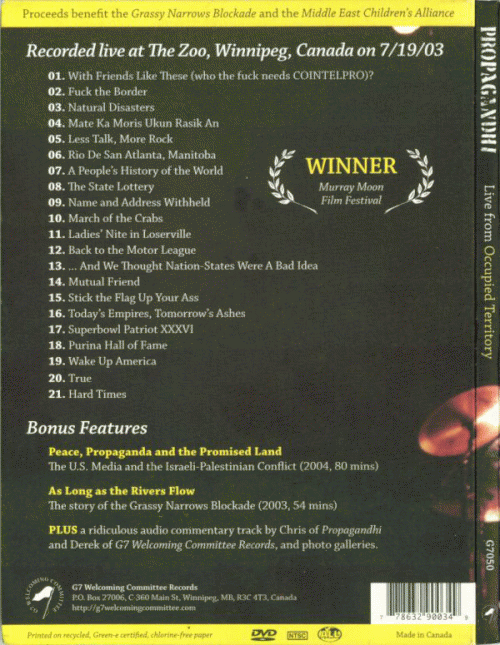 Live From Occupied Territory: An Official Bootleg - Recorded live at The Zoo, Winnipeg, Canada on 7/19/03